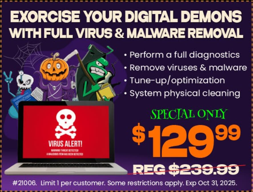 HALLOWEEN SPOOKTACULAR DEALS • DON’T LET YOUR TECH HUNT YOU! - BOOK TODAY • BACK TO SCHOOL - 150 OFF • BACK TO SCHOOL - 150 OFF •